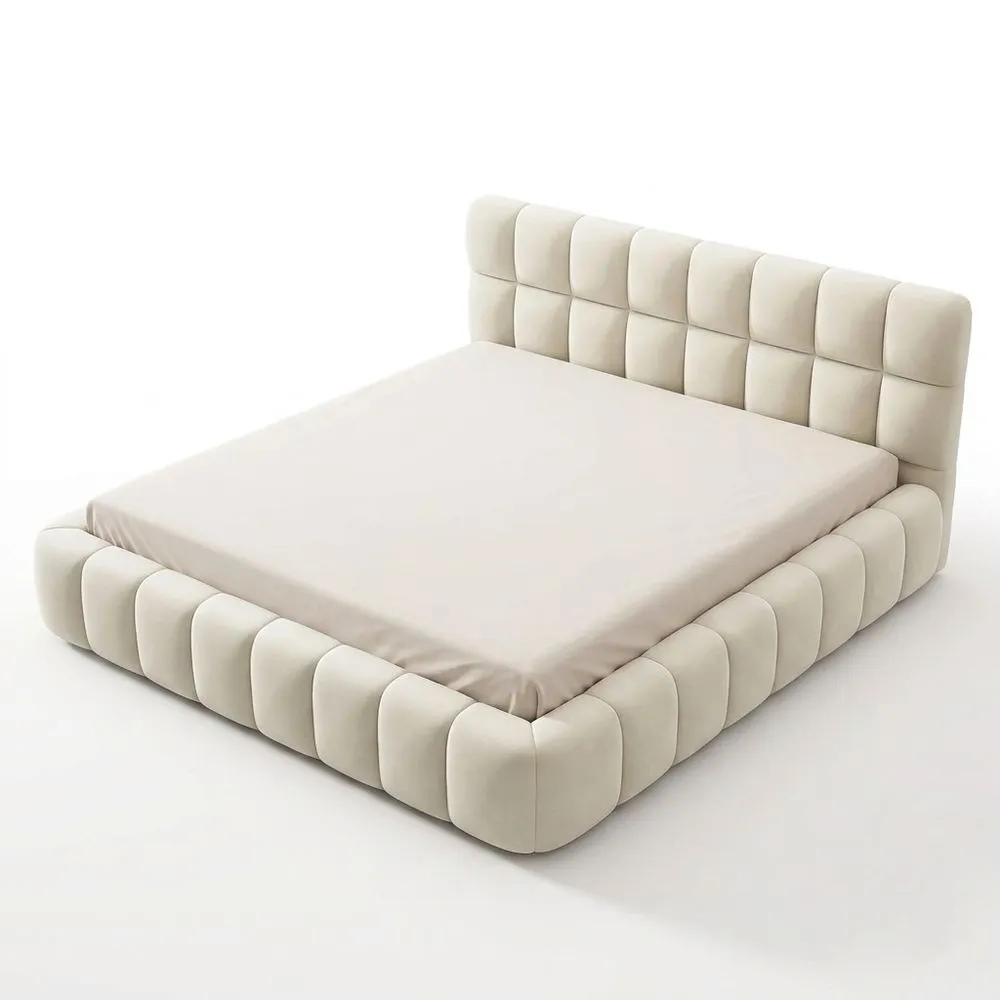 Cama tapizada doble 160 x 200 cm con cabecero suave, estructura de cama sin colchón, beige