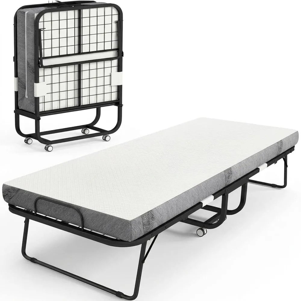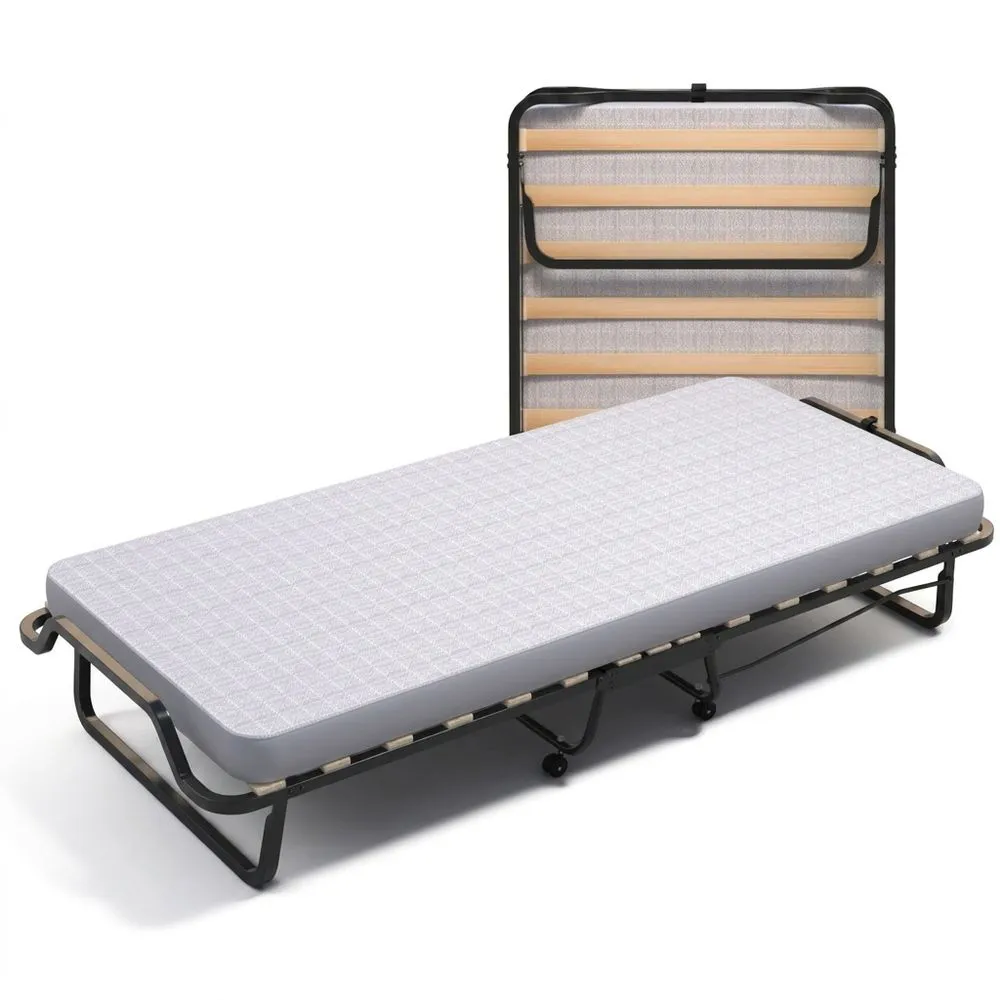 Cama Plegable 200 x 80 cm con Colchón de 10 cm y Ruedas