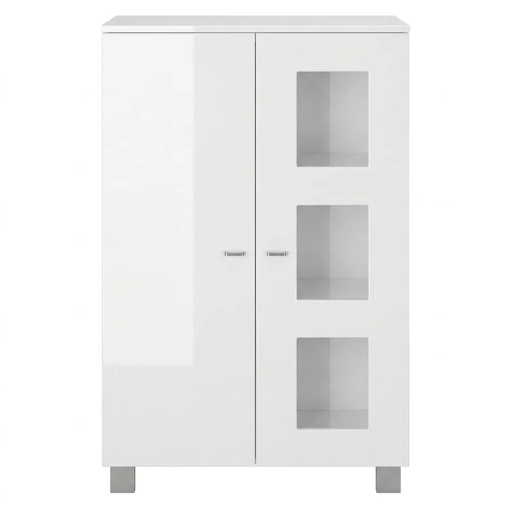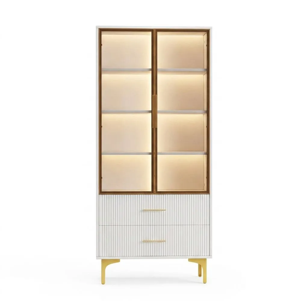 Vitrina elegante para salón con puertas de vidrio blanco mate