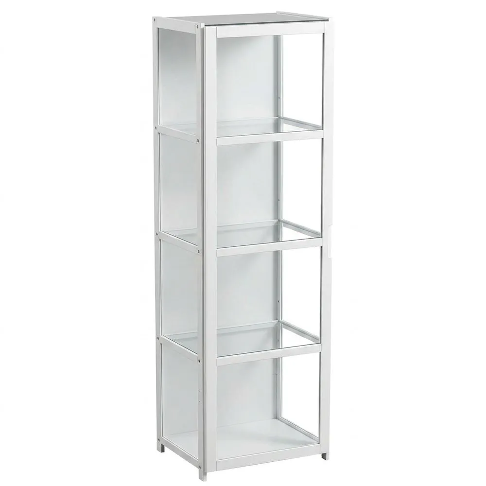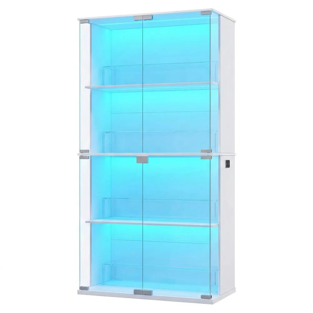 Vitrina de Cristal con Luces LED, Estante Multiuso para Colecciones, Casa y Oficina, Marco Blanco-Negro