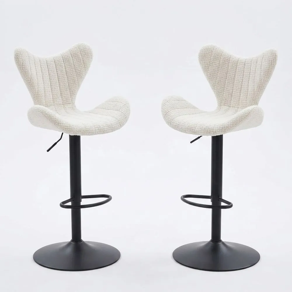 Juego de 2 taburetes altos giratorios de cocina con altura ajustable, moderno de tela chenilla con respaldo en forma de L y cojín suave para salón/restaurante/bar, color avena