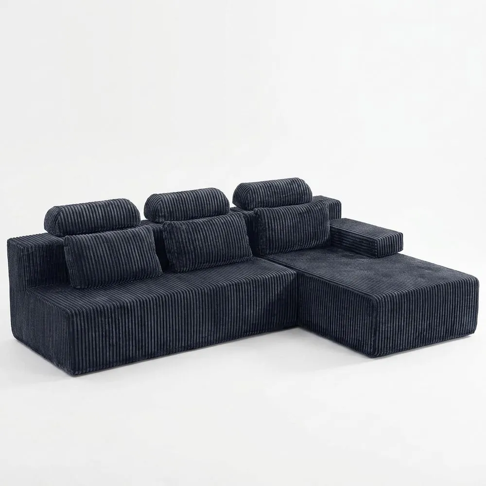 Este sofá con respaldo alto está diseñado para ofrecer soporte al cuello, espalda y zona lumbar. Se adapta a la forma del cuerpo y fomenta una postura adecuada al sentarse. Chaise longue flexible: la chaise longue y el reposabrazos son ajustables. Puedes configurar el sofá con la chaise longue a la izquierda o derecha, o transformarlo en una cama o área de juegos para niños. Tecnología de espuma de doble capa: la espuma de dos capas proporciona una distribución uniforme del peso y una sensación de comodidad, mientras que la capa de gel refrescante disipa el calor. Comodidad de pana suave: tapizado en pana, este sofá ofrece un agradable asiento, buena transpirabilidad y fácil mantenimiento. Los líquidos se limpian fácilmente con un paño húmedo. Fácil de montar: no requiere herramientas, solo desempácalo. En 72 horas, el sofá recupera su forma.