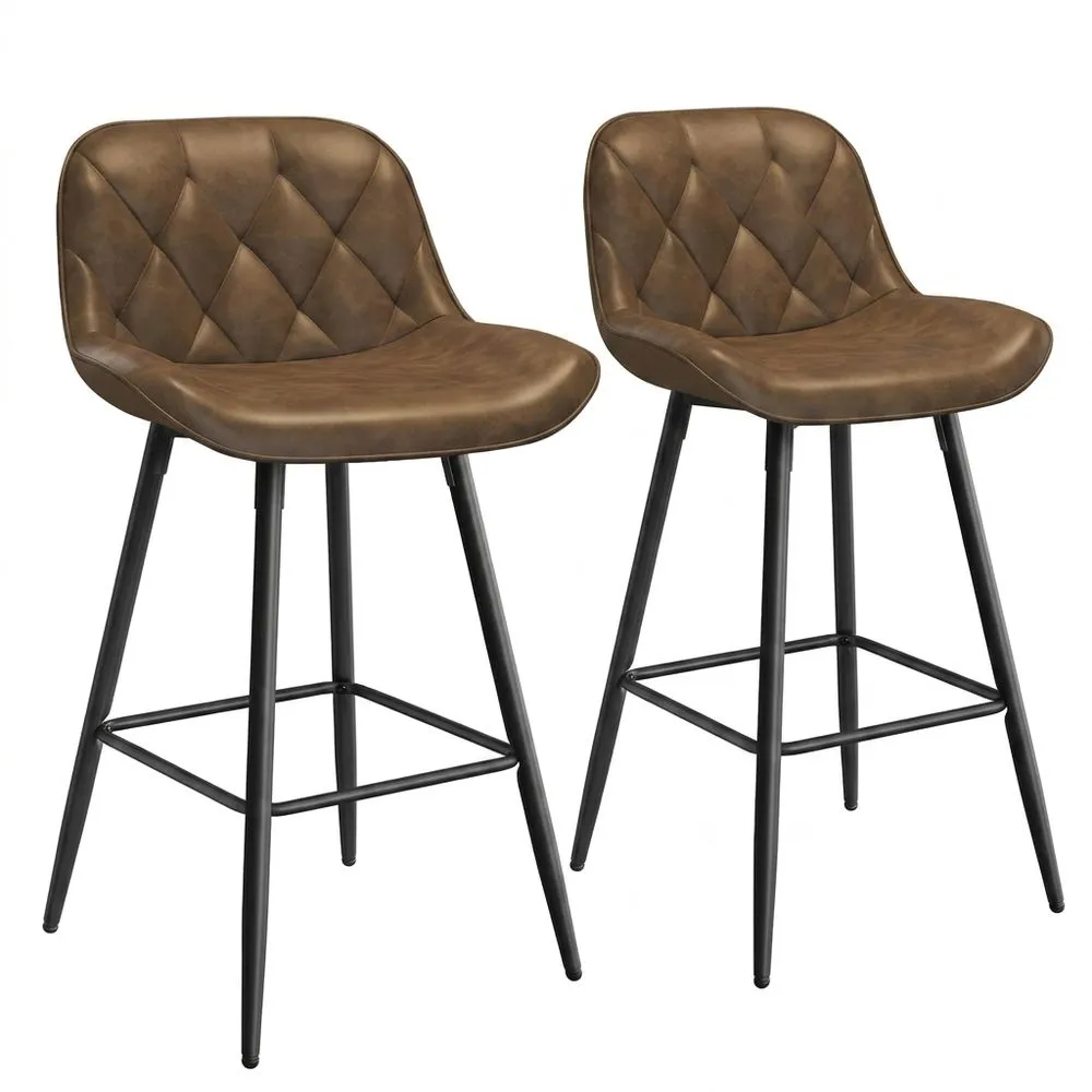 Taburetes altos de cocina, conjunto de 2 sillas de bar con respaldo, sillas altas de cuero sintético vintage, taburetes para isla de bistro, sillas tapizadas, marrón oscuro