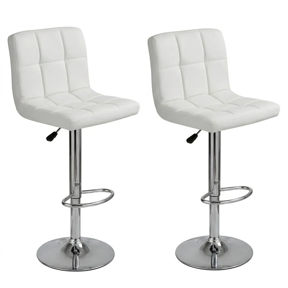 Taburetes de Bar Ajustables 360° con Respaldo y Reposapiés, Set de 2 con Asiento Acolchado